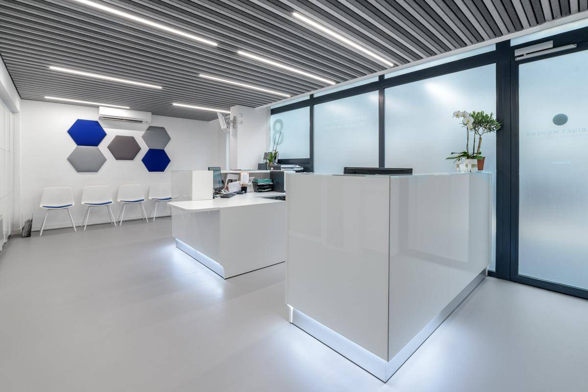 Ce praticien a profité d'une construction neuve livrée en 2019 pour installer son cabinet dentaire sur Marseille (13010). Pour ce projet, supervisé par un architecte et en collaboration avec une entreprise en charge de la fourniture du mobilier et des équipements techniques, ACB a réalisé les travaux structurels d'aménagement intérieurs : cloisonnement, électricité, plomberie, revêtement de sol, faux plafonds, peinture, mobilier et solutions acoustiques.