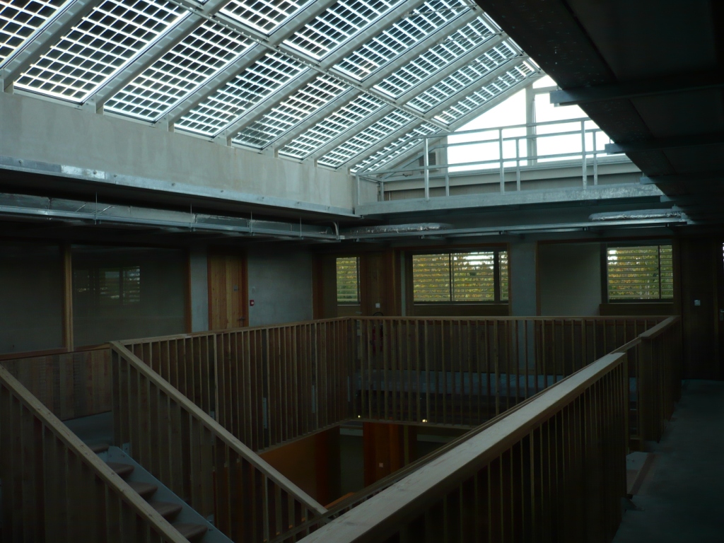 Lorsque le bâtiment n'est pas raccordé au réseau électrique, la production d'électricité solaire est stockée dans des batteries jusqu'à utilisation.